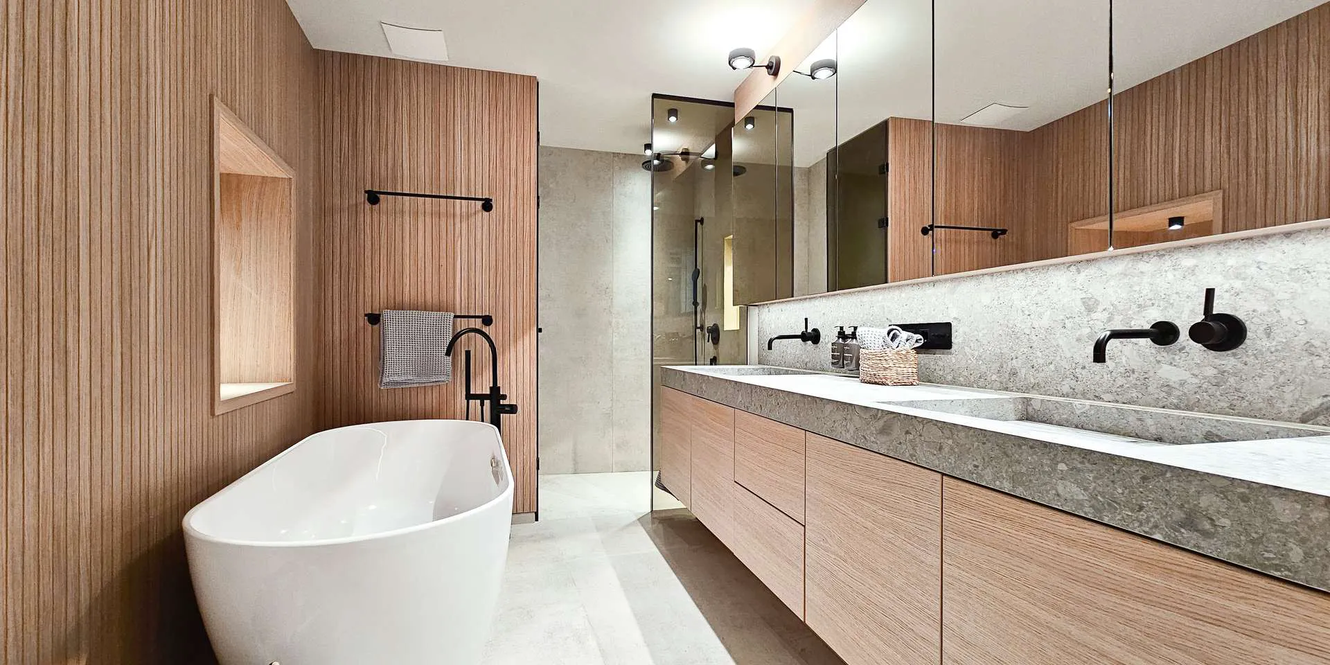 In allen Räumen ist eine Fußbodenheizung vorhanden, die Occhio Lampen sorgen für Wärme und Gelassenheit. Steuerbar ist alles inkl. Steckdosen per Handy dank des integrierten Loxone-Systems.
