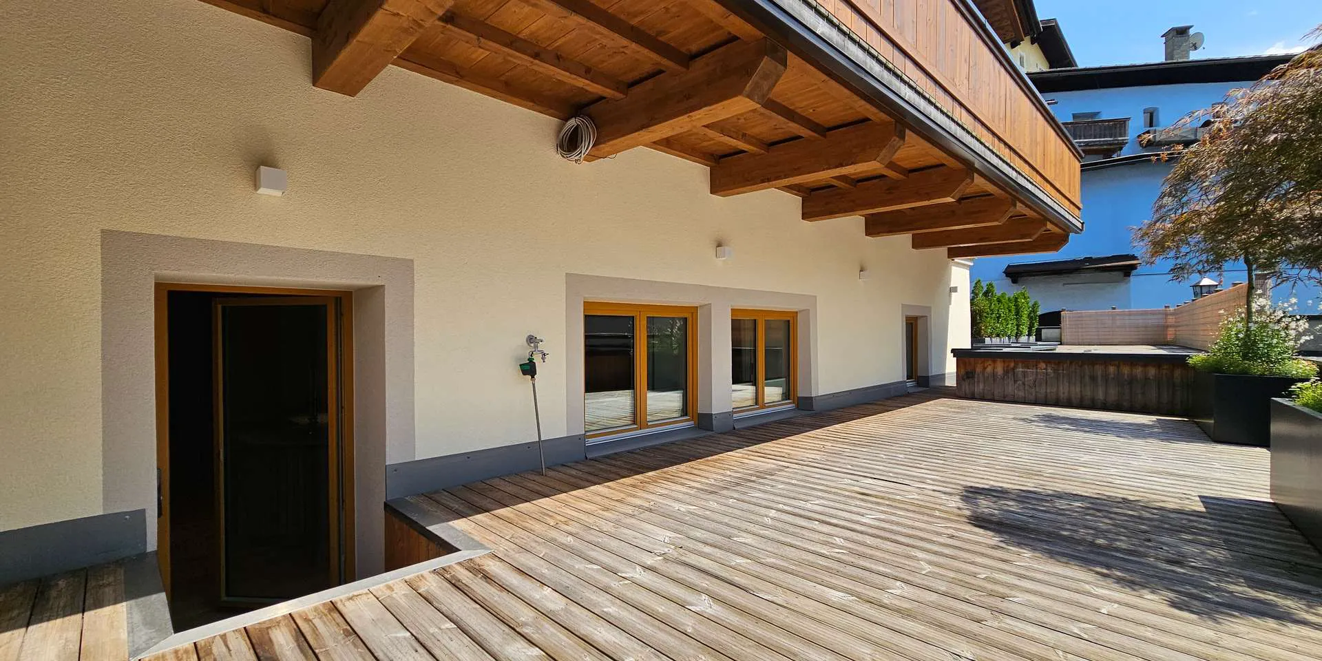 Für zusätzliches Wohnvergnügen sorgen die beiden Südwest-Terrassen mit insgesamt 75 m², wobei 45m2 zur Wohnung parifiziert sind, die restlichen 30m2 nur von der Wohnung zugänglich sind. Die Anschlüsse sowie die Genehmigung für eine Markise liegen bereits vor.