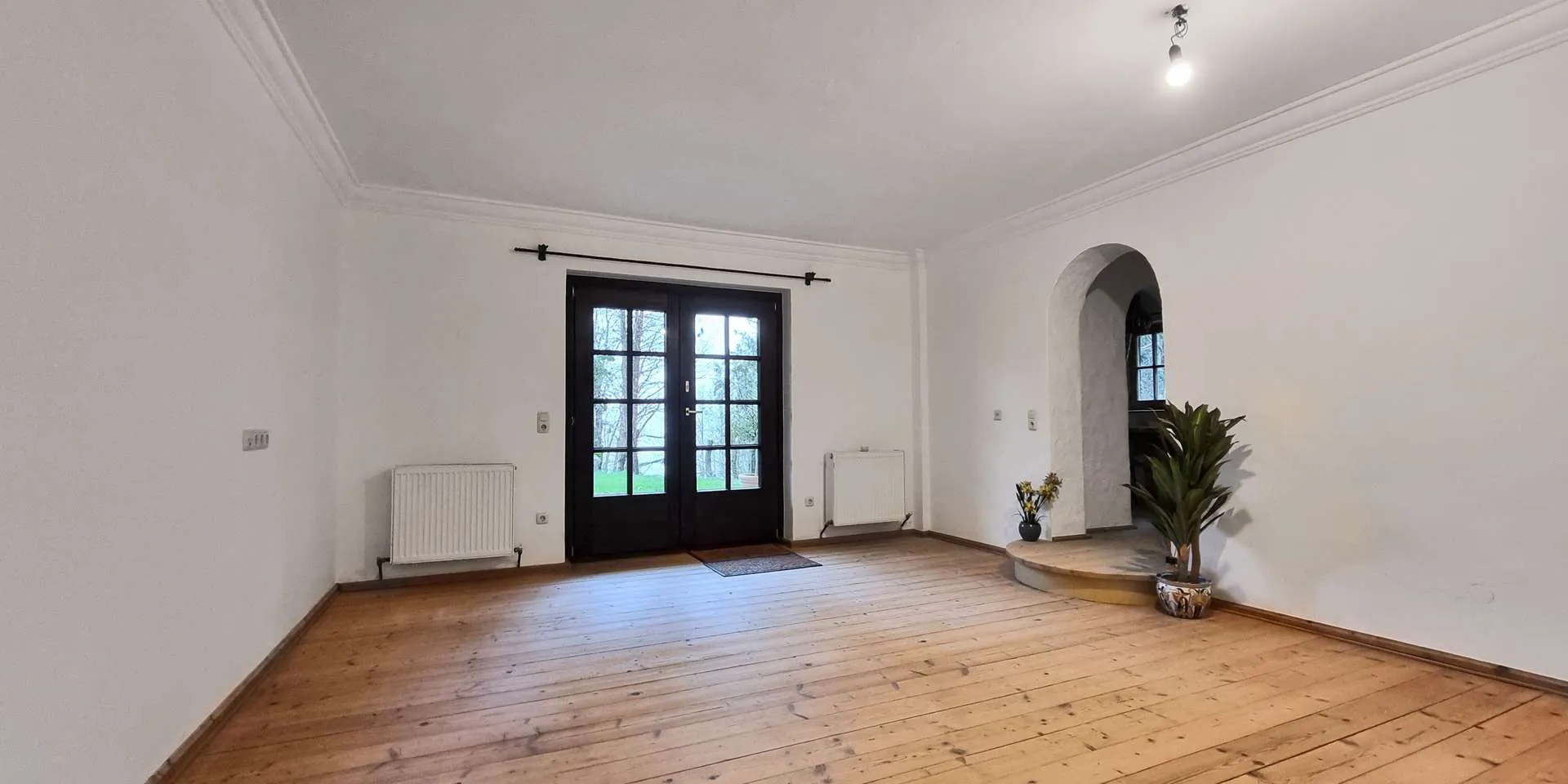 Das Gebäude wurde 1975 in massiver Bauweise errichtet und verfügt auf zwei Ebenen über eine Wohnnutzfläche von 214m2. Die Raumhöhen entsprechen dem heutigen Stand, wesshalb einer Sanierung nichts im Wege steht. In Summe bietet die Immobilie zwei Wohnbereiche sowie fünf Schlafzimmer. Momentan sind ein Bad sowie zwei Gäste-WCs vorhanden, wobei für ein zweites Badezimmer die Anschlüsse vorhanden sind. Ebenso sind die Anschlüsse für eine zweite Küche vorhanden.