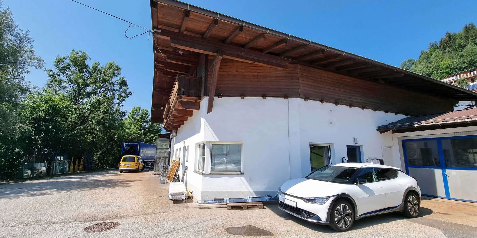 Das Firmengebäude wurde 1987 in massiver Bauweise gebaut und in den Jahren 1991 & 1997 erweitert. Auf Grund der Lage erreichen Sie zügig die Durchzugsstraße B170 zwischen Wörgl und Kitzbühel.