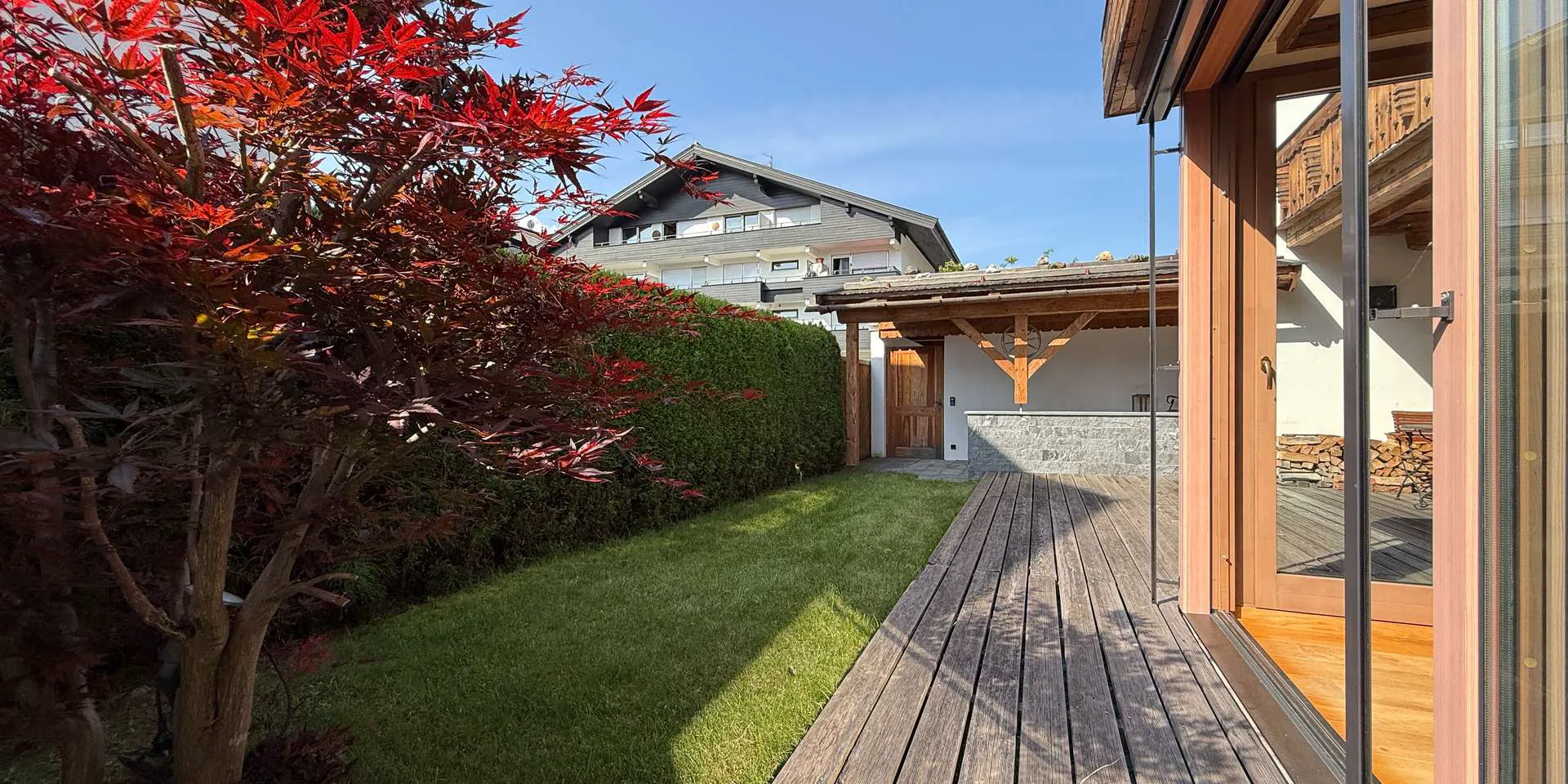 Durch den eigenen Eingang wird das Gefühl des Eigenheims verdeutlicht. Einmal im Inneren der Wohnung angekommen, überzeugen hochwertige Einbauten von lokalen Professionisten. Der alpine Stil wird durch das elegante Altholz, den Eichenholzboden und die indirekte Beleuchtung unterstrichen.
