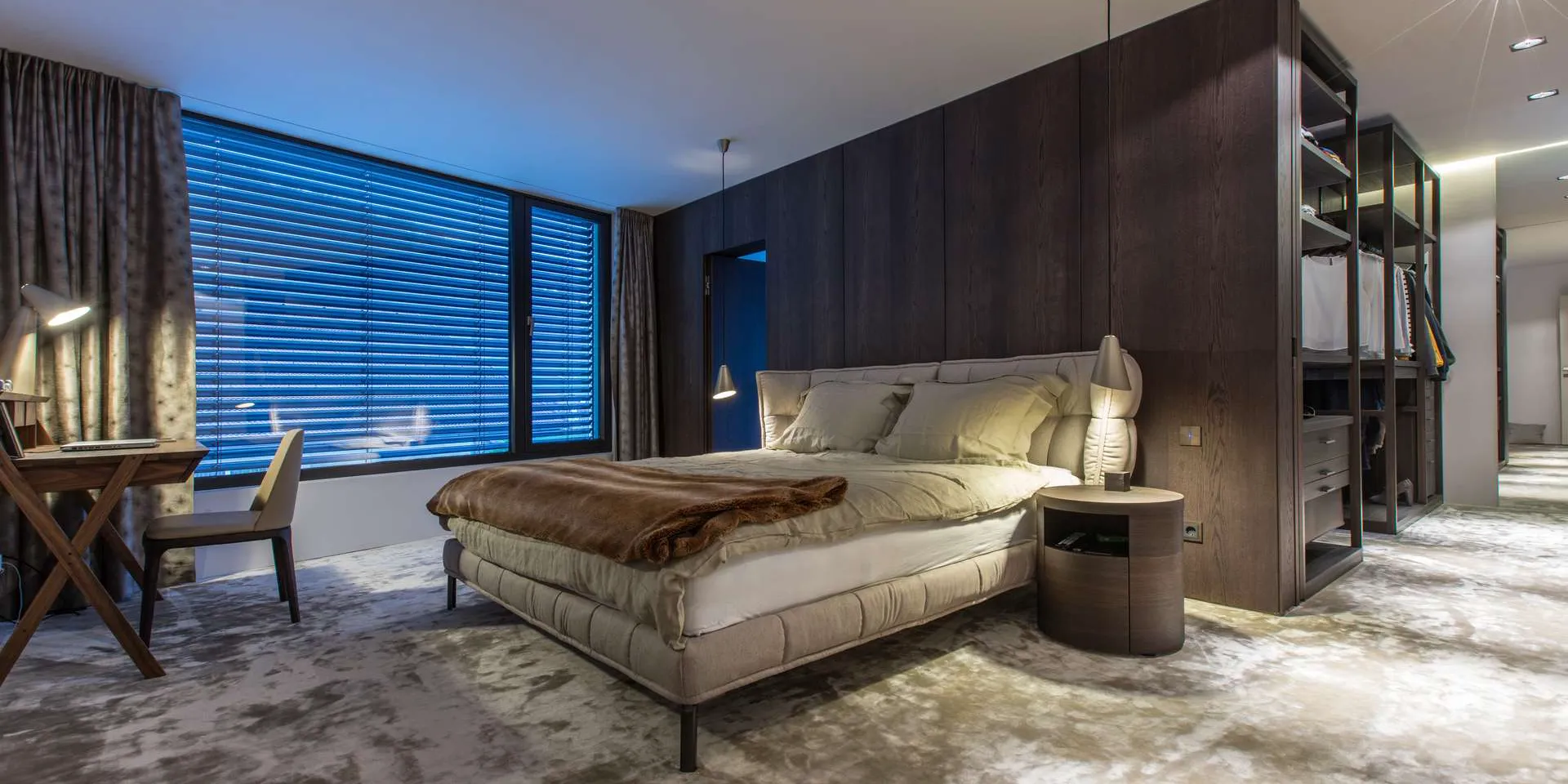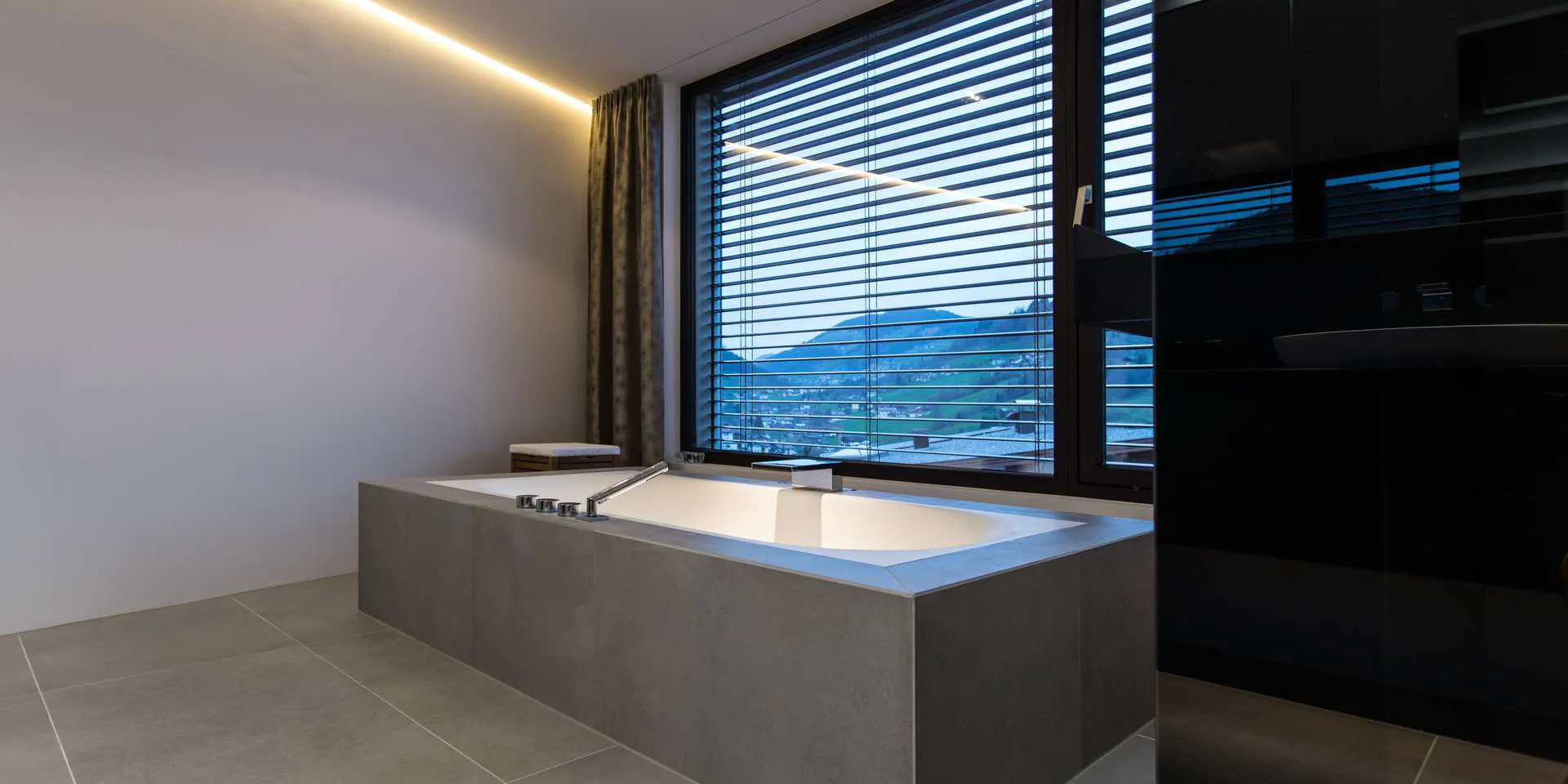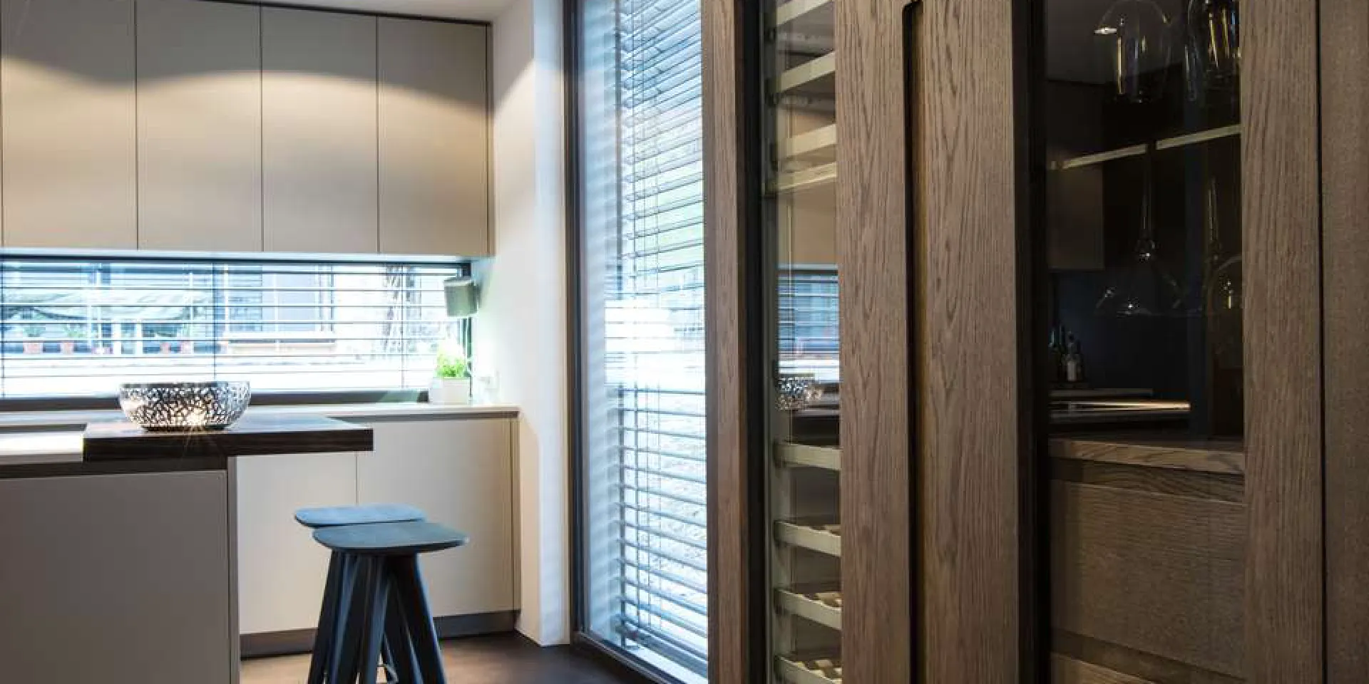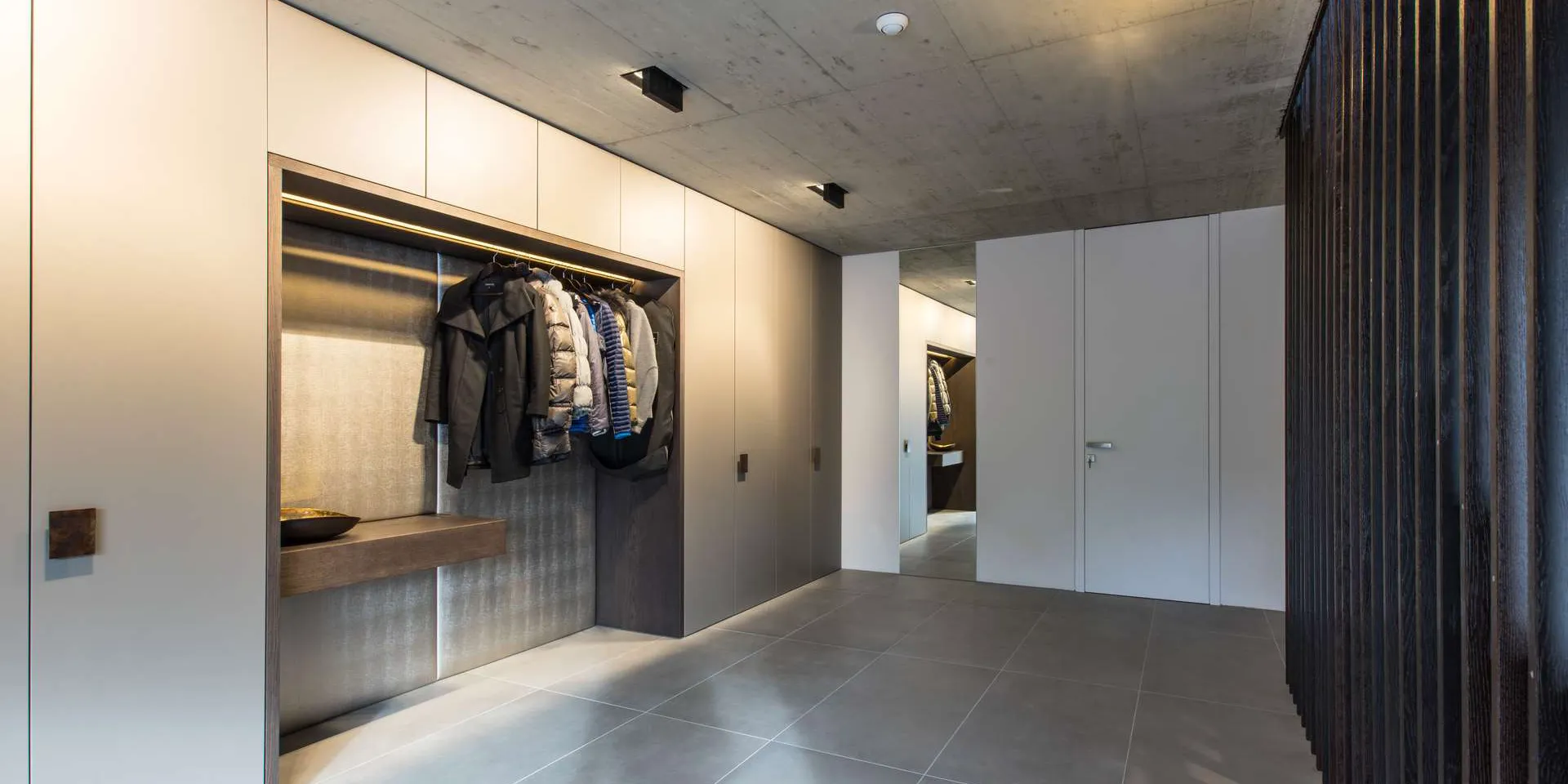 Die Nischen und Schränke wurden vom Tischler flächenbündig verbaut, die Innentüren und Fensterflächen sind raumhoch. Die 3-fach verglasten und farblich abgestimmten Internorm Holz-Alu-Fenster sind alle mit Verschattungen und teilweise mit Insektenschutz ausgestattet.