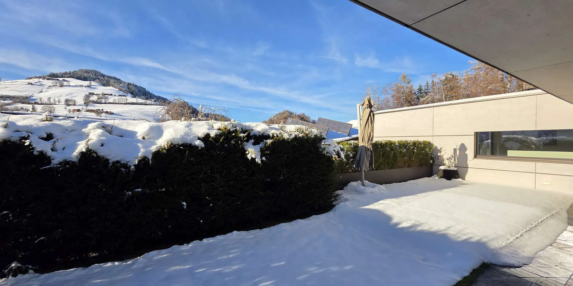 Die zentrale Wohnraumlüftung, die Luftwärmepumpe und die 9,6 kW Peak PV-Anlage machen das sonst schon äußerst energieeffiziente Gebäude nahezu autark.