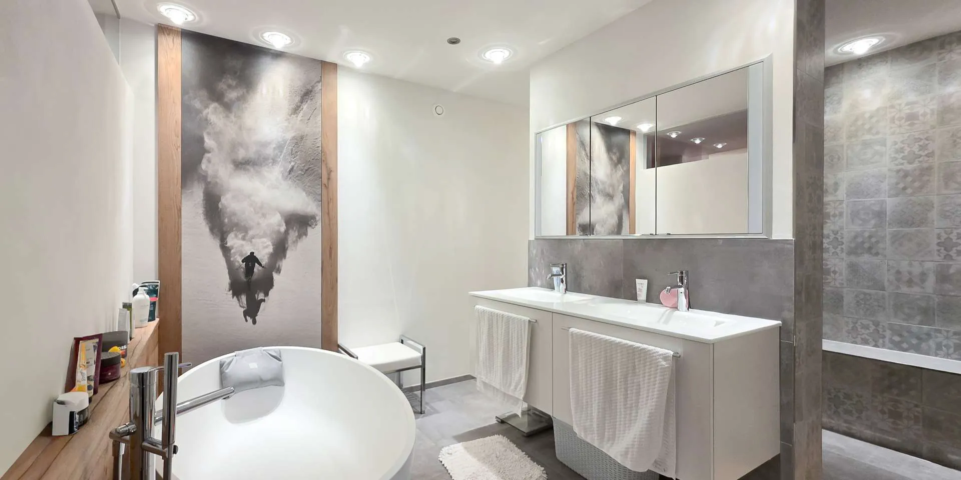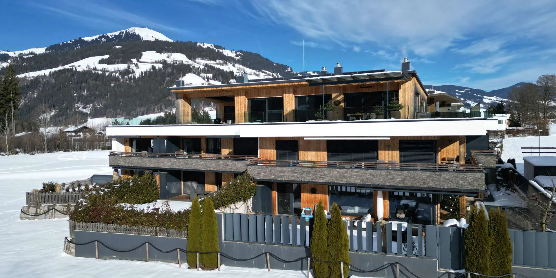 Für die Einbauten wurde auf den Luxuseinrichter Aufschnaiter in St. Johann zurückgegriffen. Bei den Fenstern wurden zusätzlich Raffstores und Insektenschutznetze verbaut. Eine elektrische Markise sorgt für zusätzliche Verschattung auf der Süd-West-Terrasse.