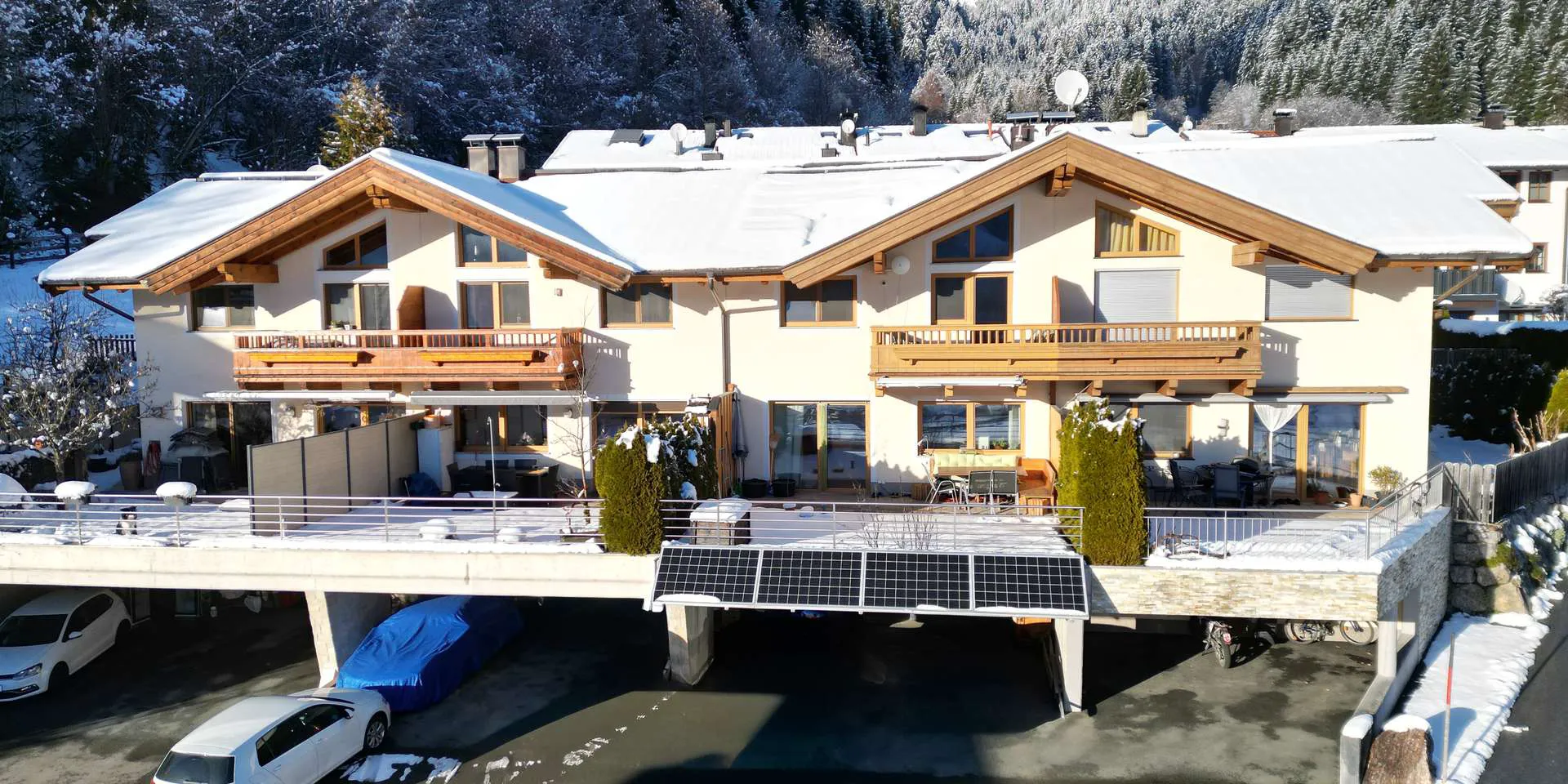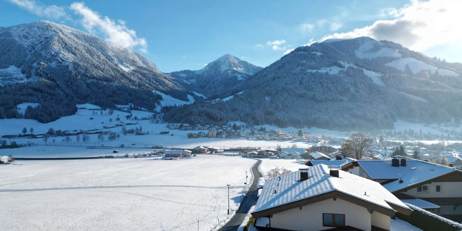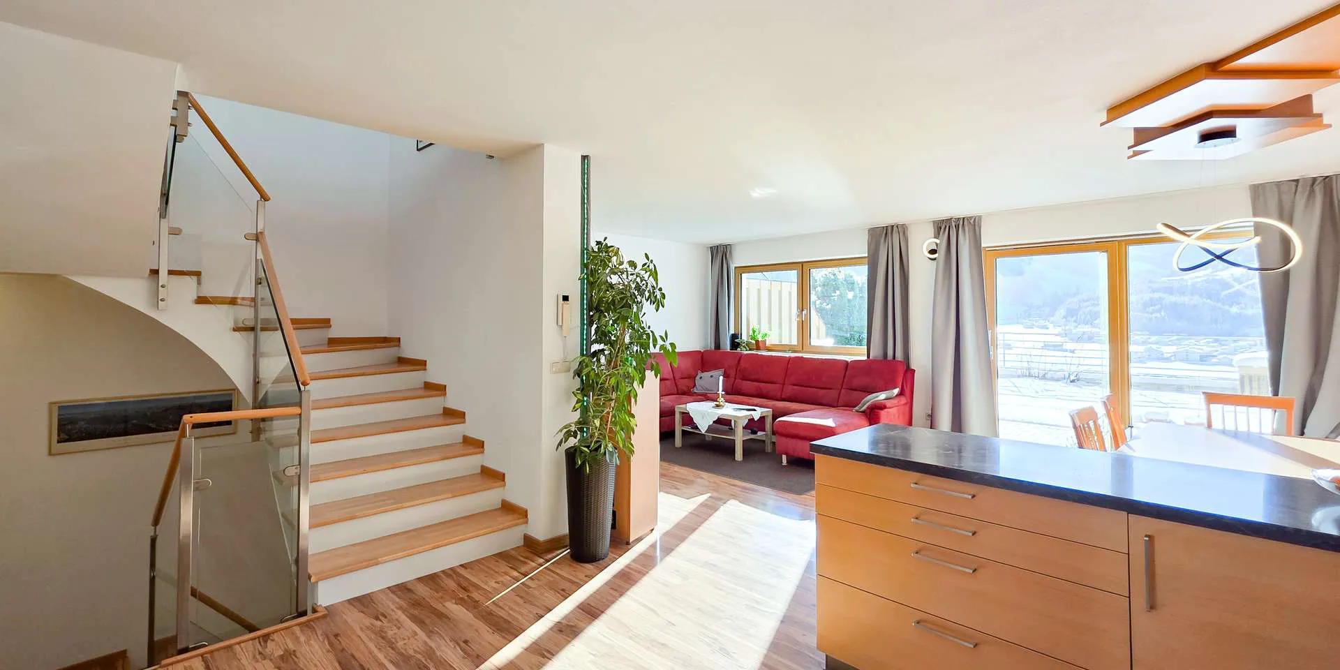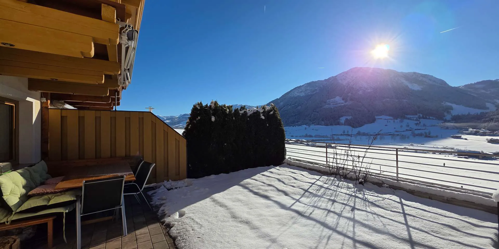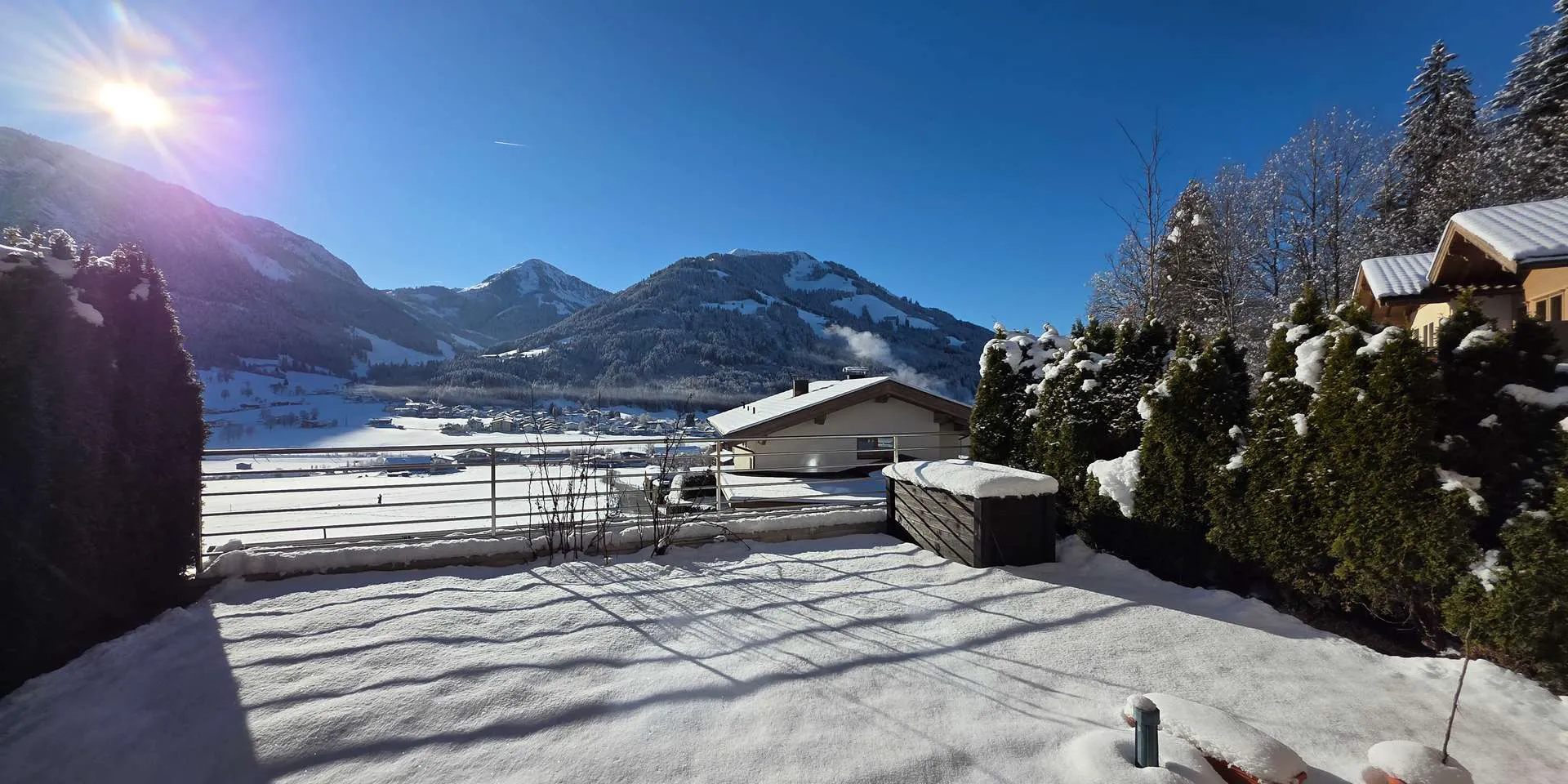 Dieses ruhig gelegene Reihenhaus befindet sich in ausgezeichneter Lage am Sonnenhang von Brixen im Thale. Der Bäcker, ein Gasthaus, der Bahnhof, die Bushaltestelle sowie der Nahversorger sind etwa 1 km entfernt. Aber auch die Tennishallen, der Einstieg zur Langlaufloipe wie auch der Skibus und eine Wellnesseinrichtung sind unter 1 km entfernt. Die Skiabfahrt läuft direkt neben dem Haus vorbei.