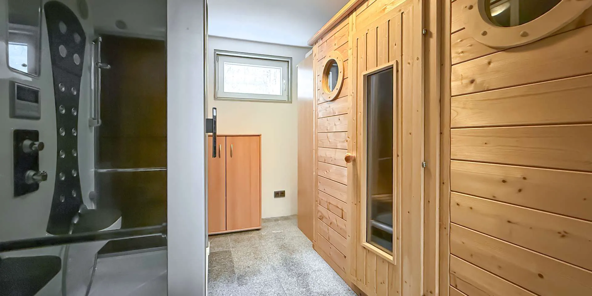 Das Haus wurde 2007 mittels hochwertiger und raumklima-freundlicher Massivbauweise erbaut. Das Gebäude verfügt über einen großzügigen Keller mit 78m², in dem eine Sauna untergebracht ist. Im Obergeschoss sind vier Schlafzimmer und ein gut geschnittenes Badezimmer mit Dusche, Wanne und WC.