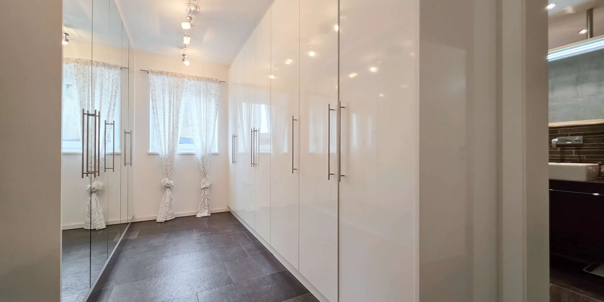 Die 129m2 große Maisonettewohnung wird im 1.OG betreten, wo sich das Elternschlafzimmer sowie zwei vollwertige Kinder Schlafzimmer befinden. Angegliedert an das Elternschlafzimmer, aber auch vom Gang betretbar befinden sich der begehbare Schrankraum und das XL-Badezimmer mit Dampfdusche, Wanne, Doppelwaschtisch und Fenster. Ein Technik/Waschraum komplementiert diese Ebene.