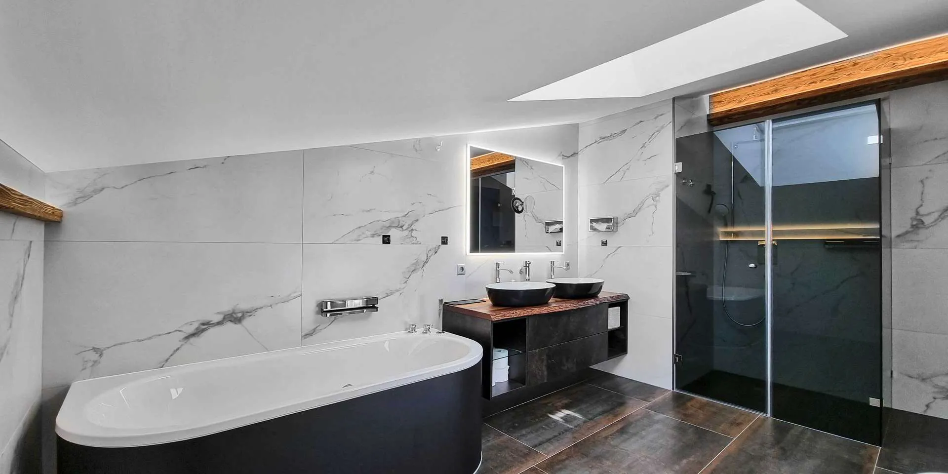 Zusätzlich steht der Wohnung ein eigener mit Fenster ausgestatteter Saunaraum zur Verfügung. Ein separater Waschraum, ein Gäste-WC sowie ein Technikraum wurden ebenfalls ideal in die Planung miteinbezogen.