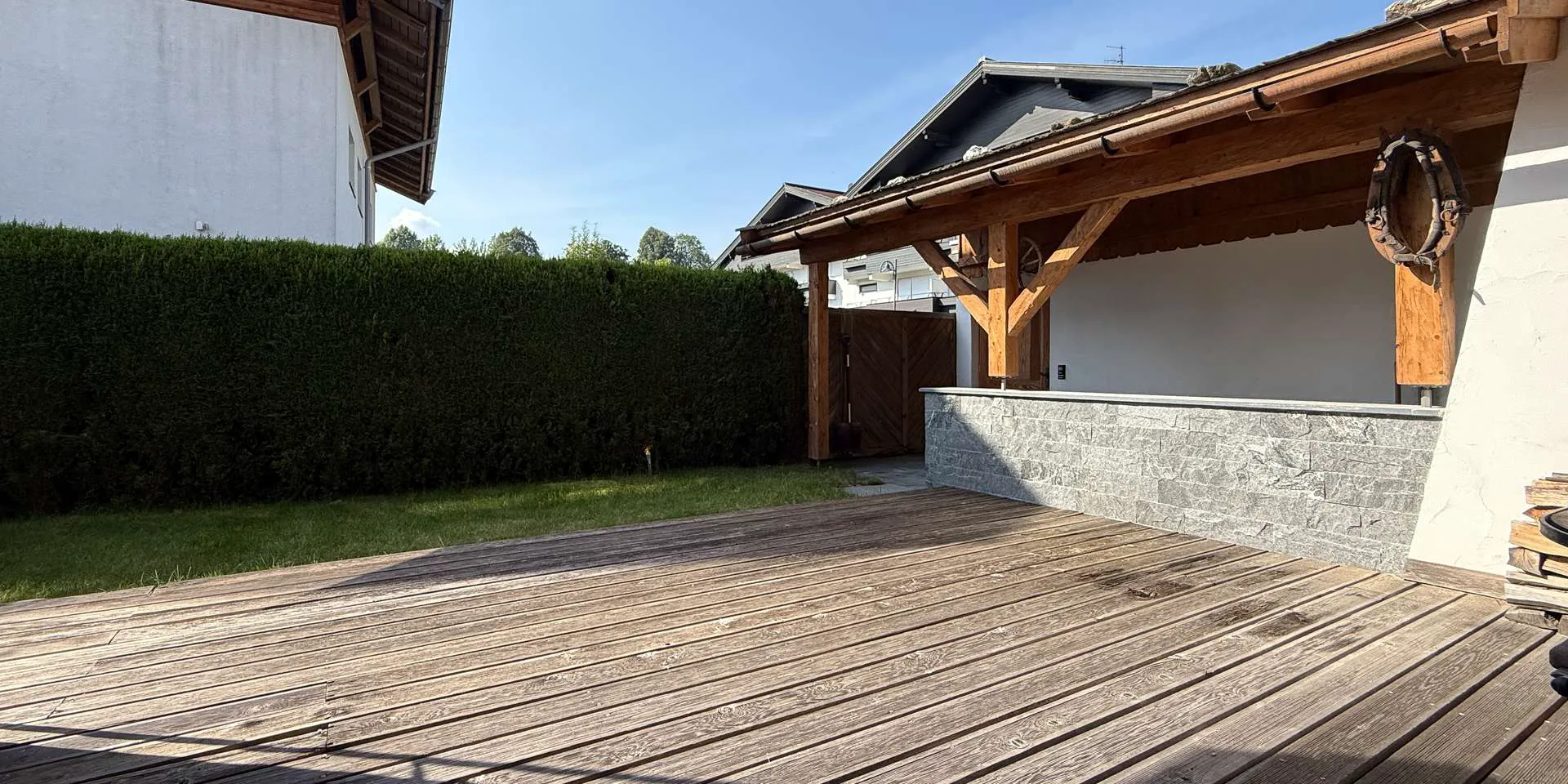 Der offene Kamin, inmitten des großzügigen Wohn-/Essbereichs, spendet zusätzliche Wärme an kalten Wintertagen. Die überdurchschnittliche und nach Süden ausgerichtete Außenfläche lädt zum Verweilen ein.