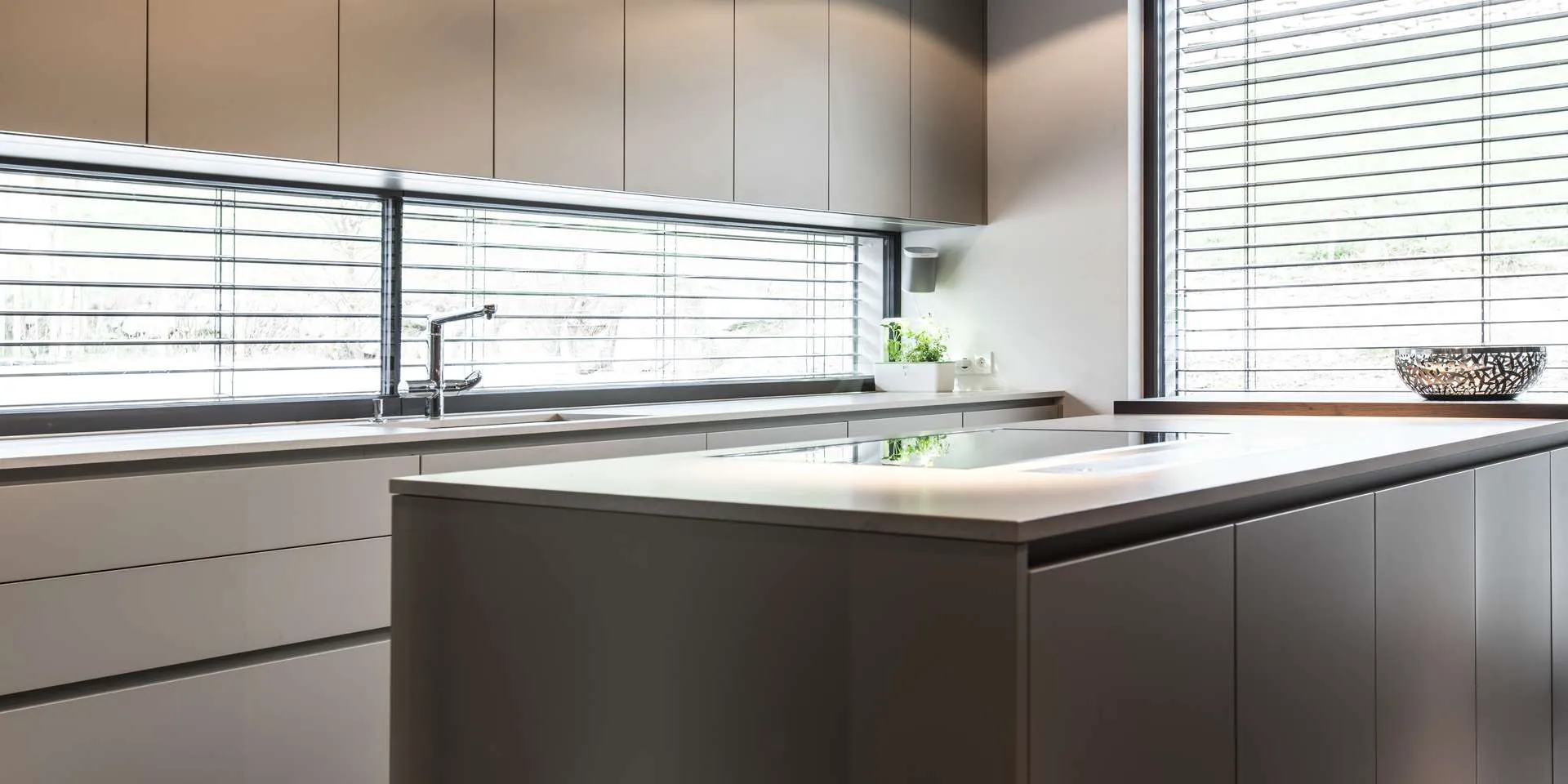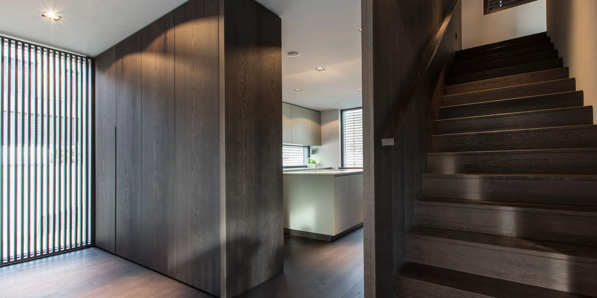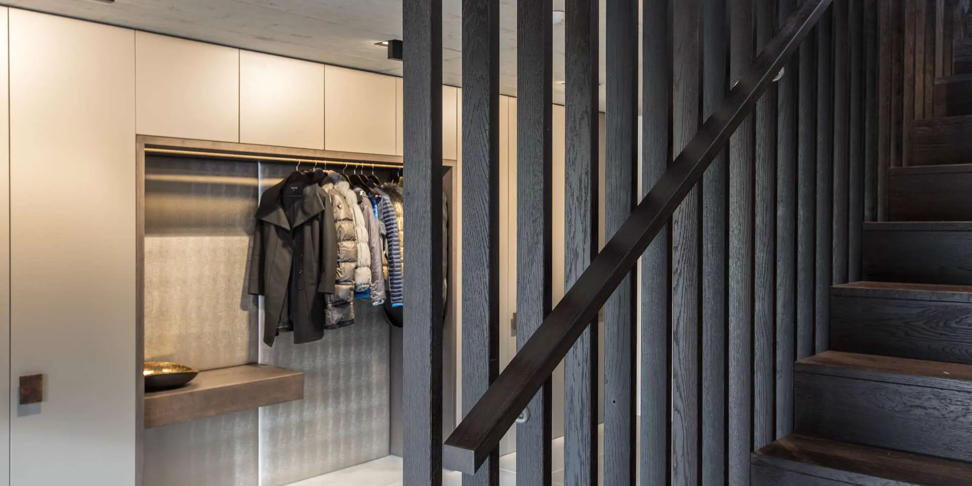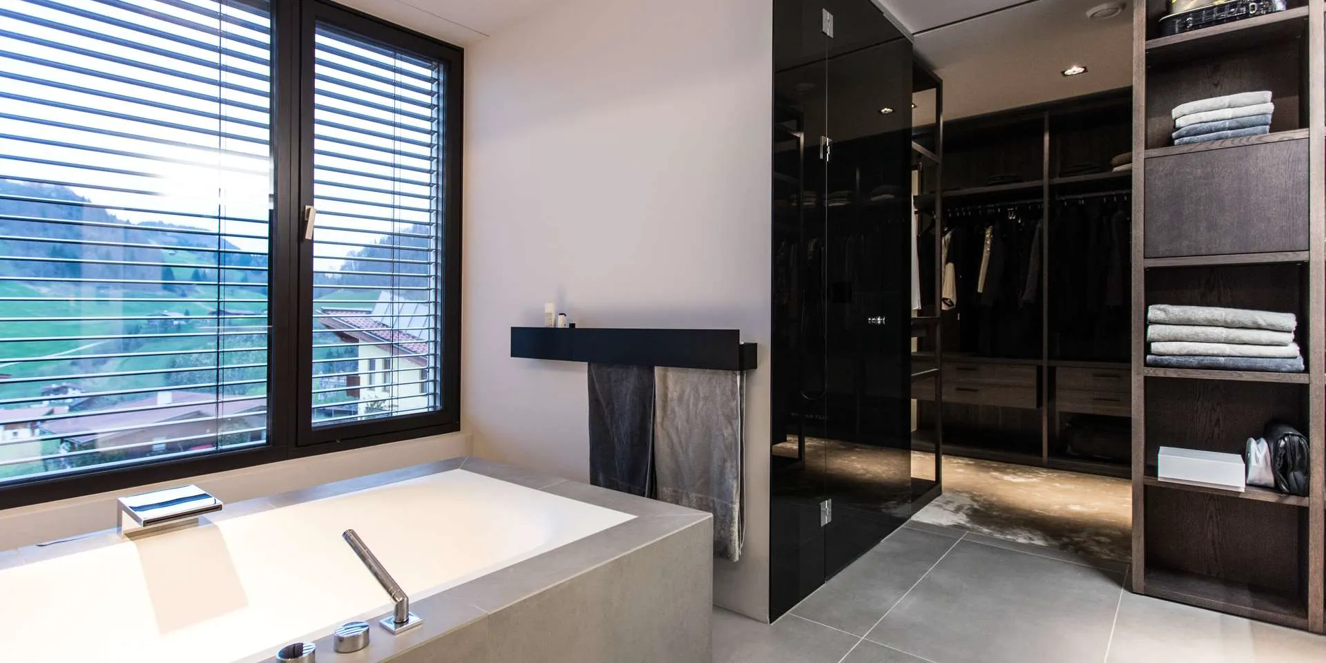 Die Nischen und Schränke wurden vom Tischler flächenbündig verbaut, die Innentüren und Fensterflächen sind raumhoch. Die 3-fach verglasten und farblich abgestimmten Internorm Holz-Alu-Fenster sind alle mit Verschattungen und teilweise mit Insektenschutz ausgestattet.