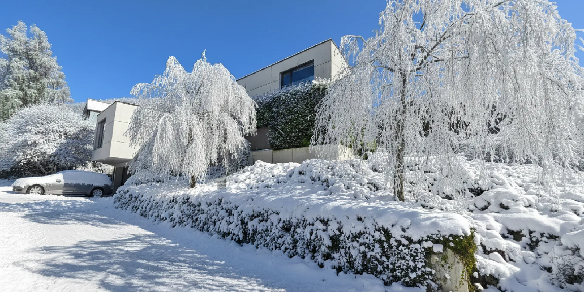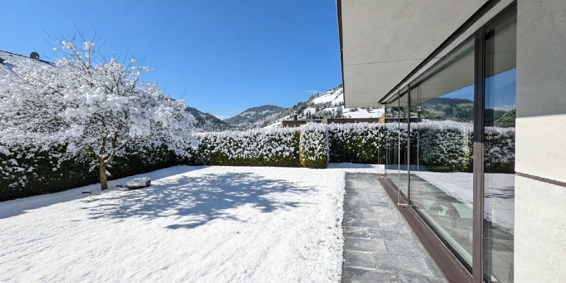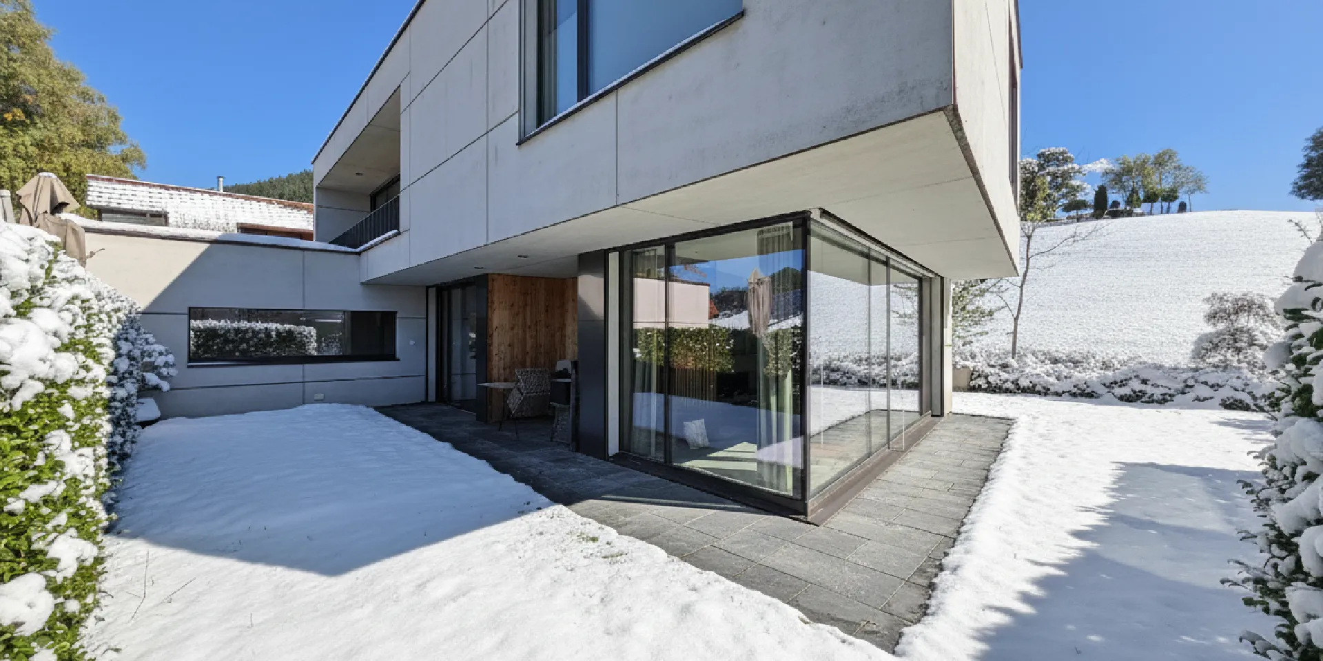 Die zentrale Wohnraumlüftung, die Luftwärmepumpe und die 9,6 kW Peak PV-Anlage machen das sonst schon äußerst energieeffiziente Gebäude nahezu autark.