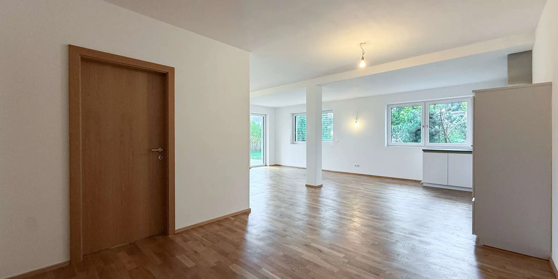 Im Inneren der Wohnung bemerkt man überdurchschnittliche Deckenhöhen von 2.60m, durch welche die Räume noch einladender wirken. Die Wohnung wird per Fußbodenheizung über eine Erdwärmepumpe beheizt. Sämtliche Räume sind dank Einzelregler unabhängig voneinander steuerbar.