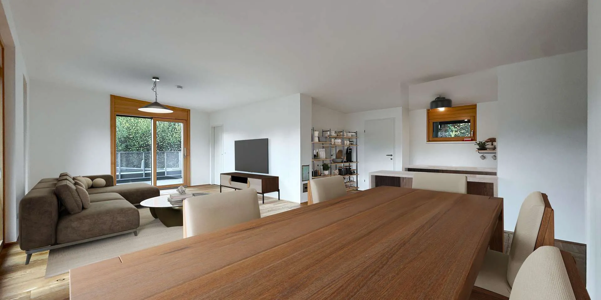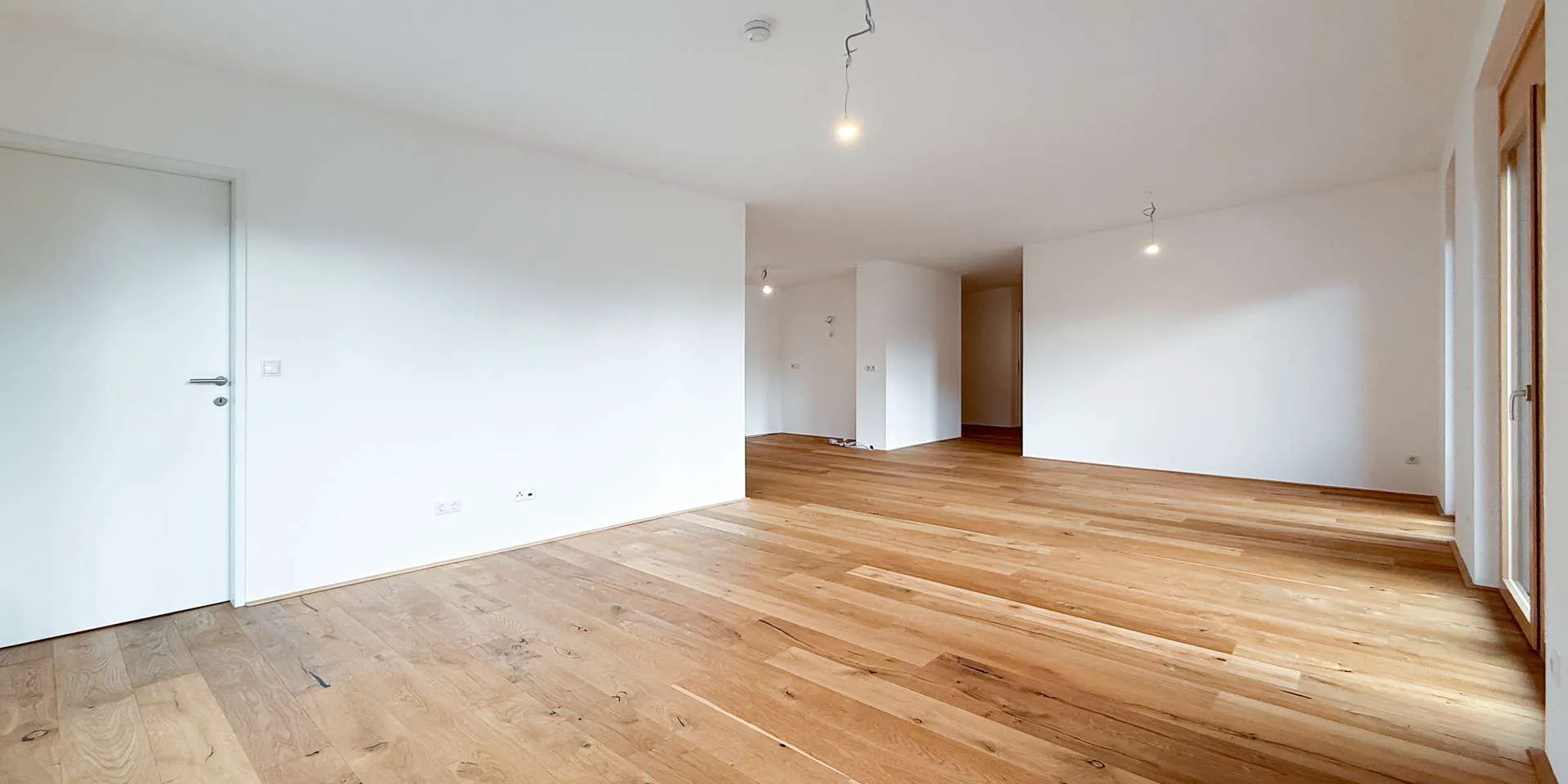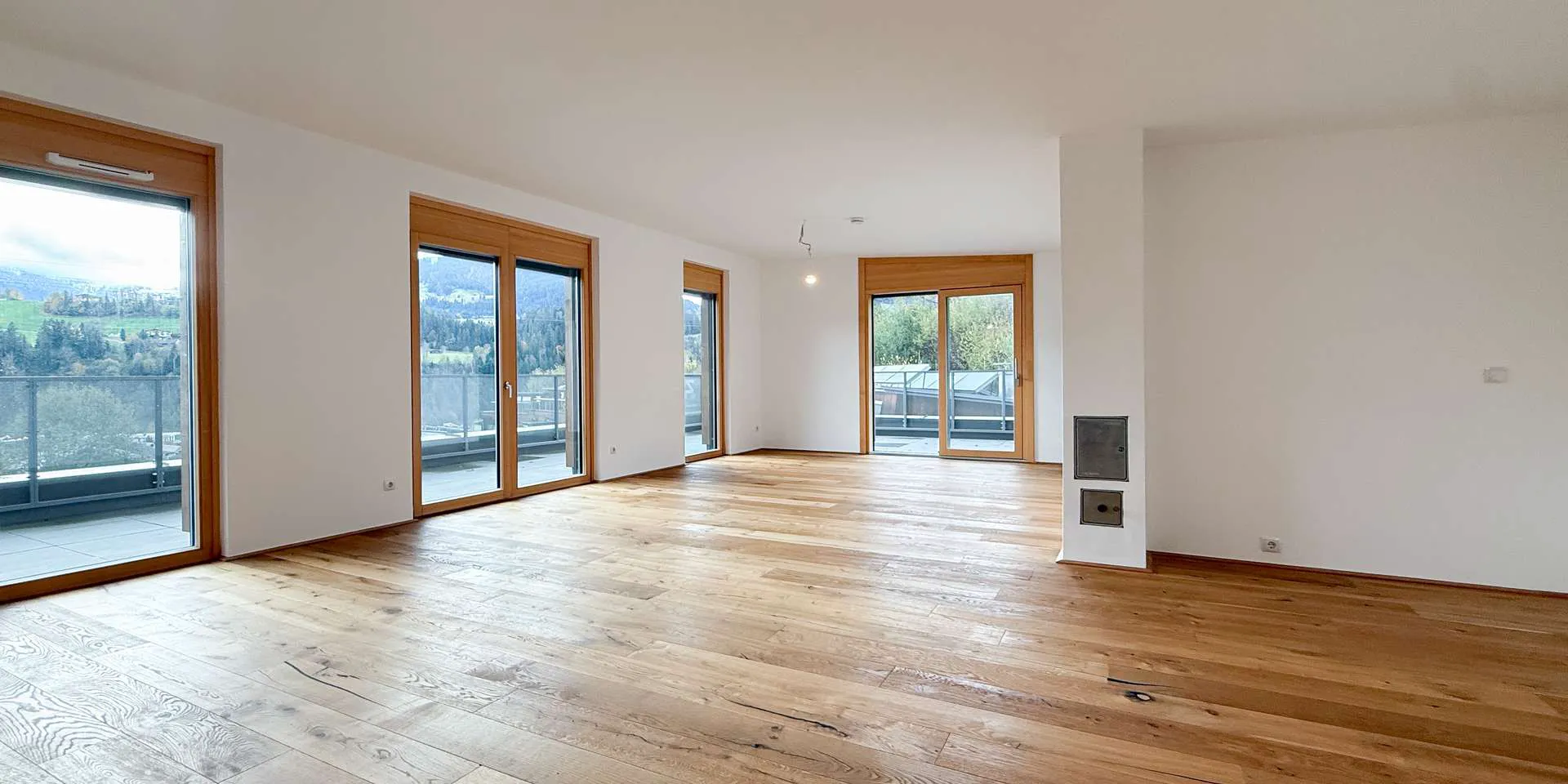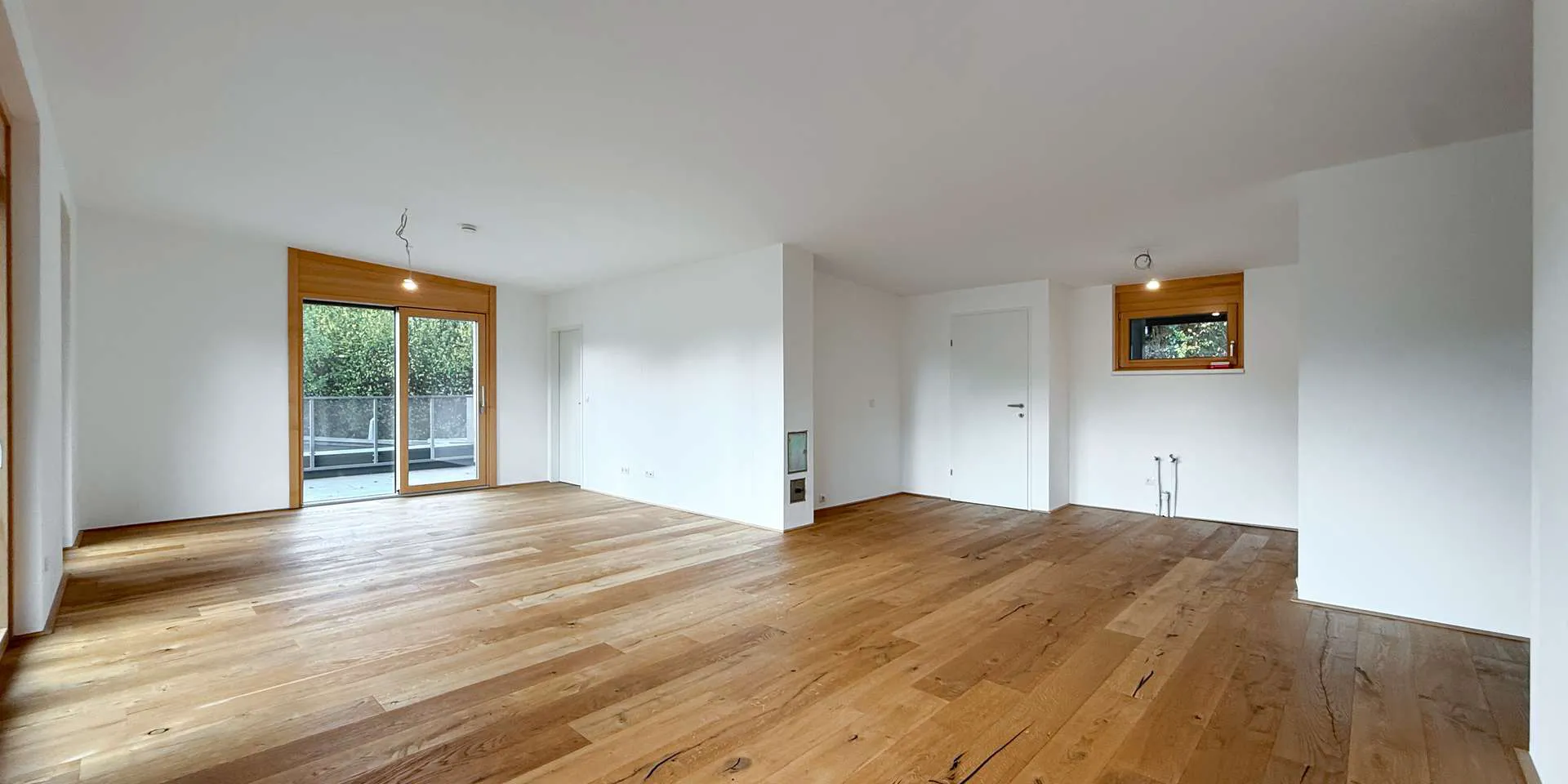 Alle Parteien sind mit hochwertigen Holzdielen sowie modernen, großformatigen Fliesen ausgestattet. Dank einer durchdachten Planung befinden sich die offenen Wohn-Koch-Essbereiche ideal im Süden des Objekts.