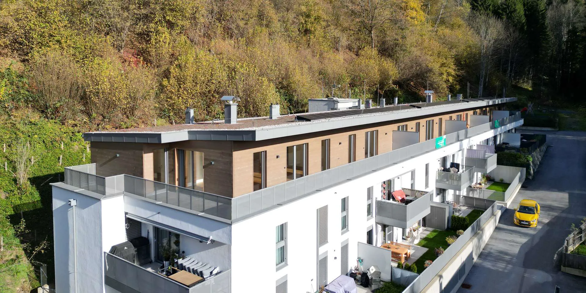 Diese Neubau-Wohnanlage liegt in erhöhter Sonnenlage am Ende einer Sackgasse. Das Projekt ist barrierefrei errichtet und verfügt über ausreichend Stellplätze für die Eigentümer und Besucher der 15 Parteien.