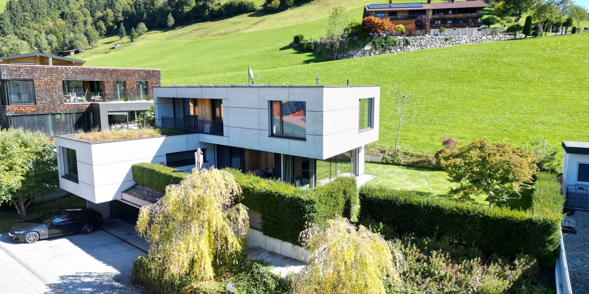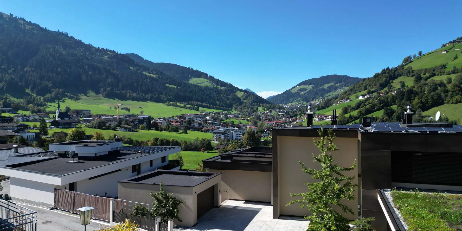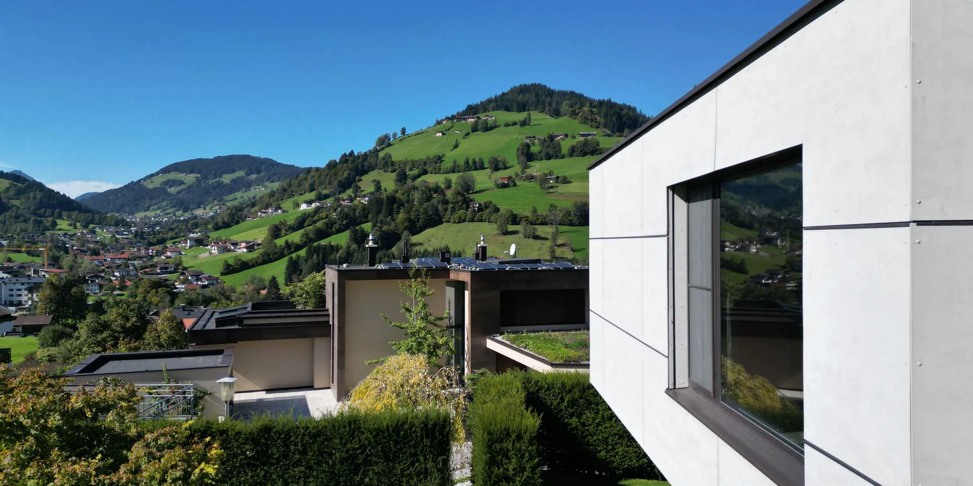 Besonderes Highlight ist das dahinter liegende Freiland, aber auch der Blick über Niederau bis Oberau ist bilderbuchreif. Geografisch gehört die Immobilie zur Gemeinde Hopfgarten, Bezirk Kitzbühel.