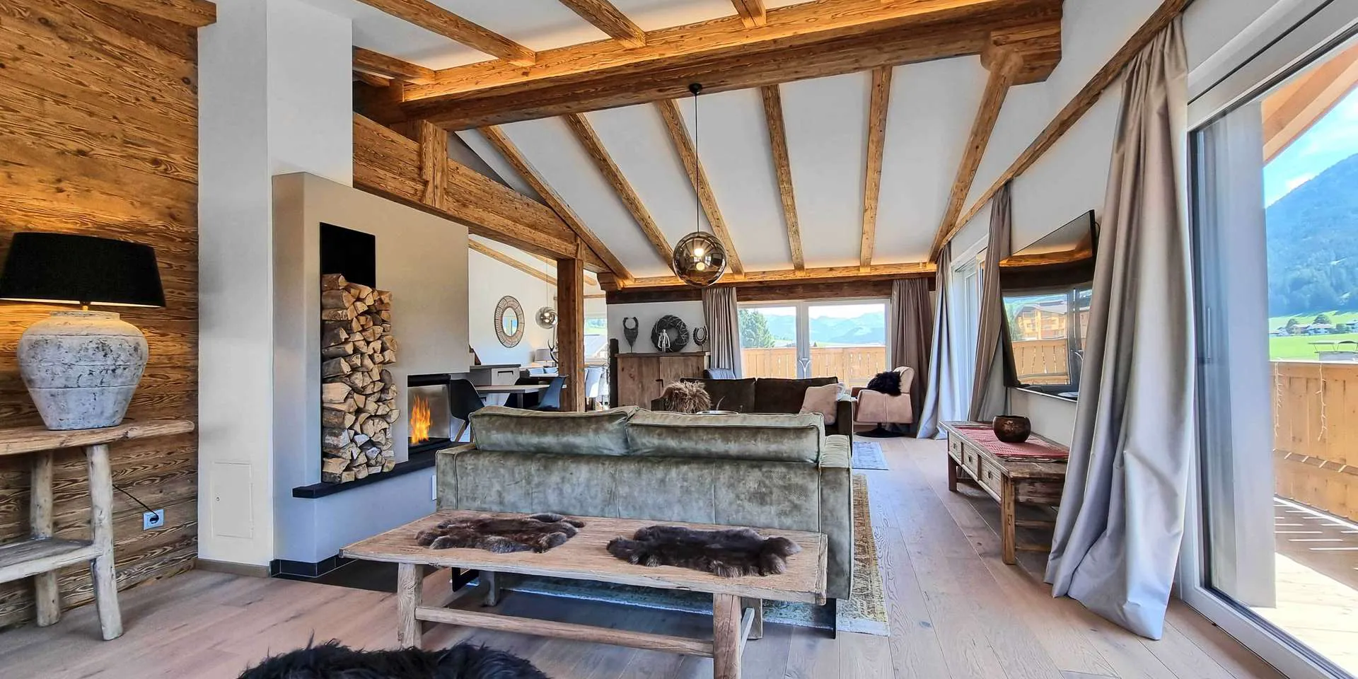 traumhafte Bergkulissen vom Kitzbüheler Horn über den Gaisberg, Gampen, die Choralpe bis hin zur Hohen Salve.