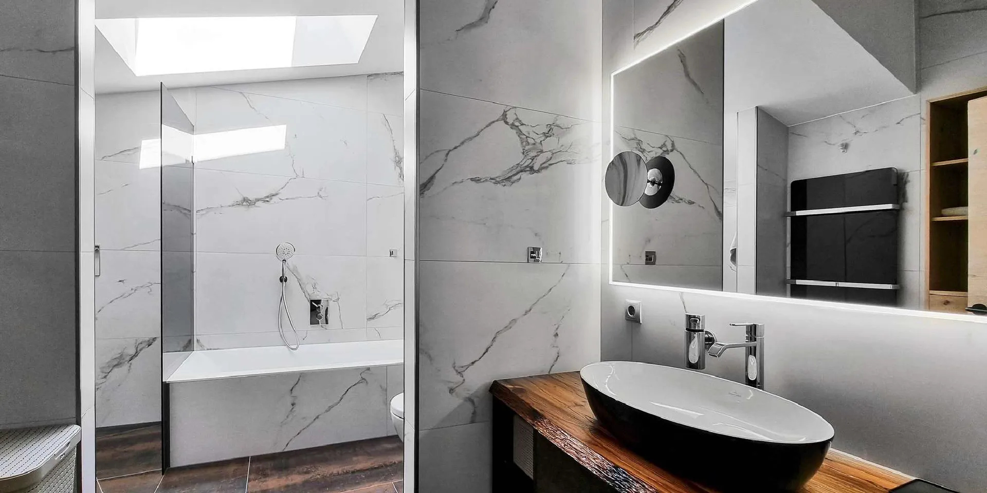 Zusätzlich steht der Wohnung ein eigener mit Fenster ausgestatteter Saunaraum zur Verfügung. Ein separater Waschraum, ein Gäste-WC sowie ein Technikraum wurden ebenfalls ideal in die Planung miteinbezogen.